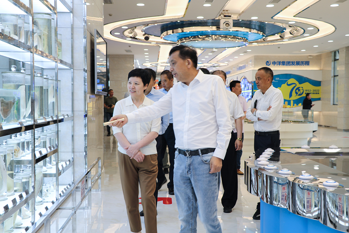天津市北辰区常委会副主任陈秀华,天津南通商会会长、天士力控股集团有限公司总裁朱永宏一行参观了CQ9电子现代渔业科技产业园。他们对CQ9电子集团一主多元的产业发展路径表示肯定,并高度评价了CQ9电子现代渔业全产业链的发展模式以及担当社会责任保护濒危物种的家国情怀,值得推广和借鉴。
