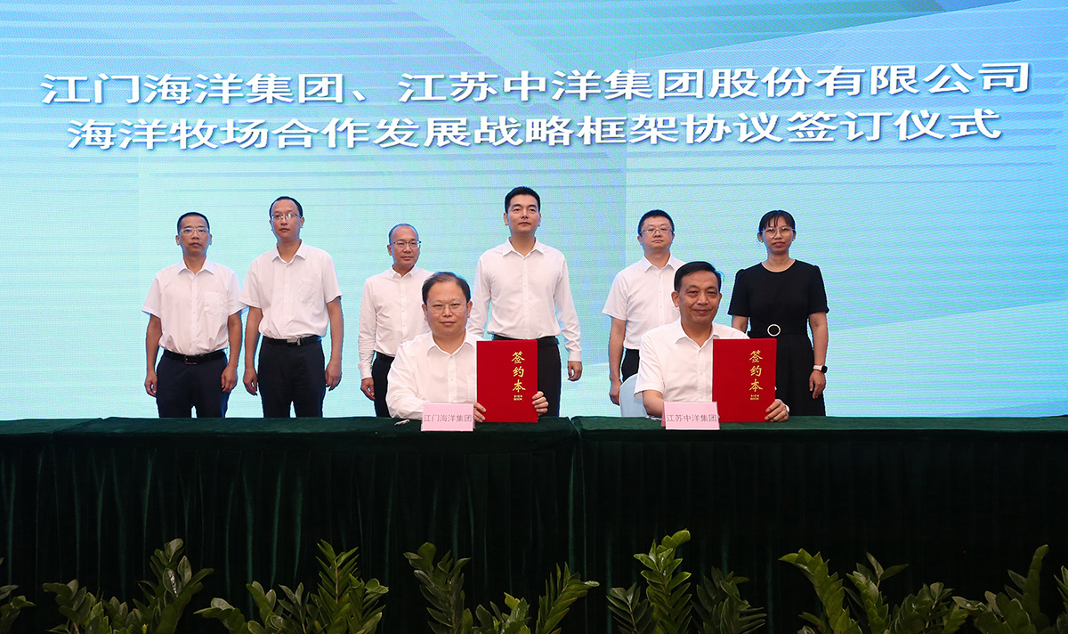 为加快推进现代化海洋牧场全产业链布局,大力建设海洋牧场,做大做强海洋经济,7月13日,江门市国资委、江门公用事业集团有限公司(以下简称“江门公用集团”)联合举办江门海洋牧场产业发展对接大会,江苏CQ9电子集团作为国家级重点龙头企业在大会上与江门海洋集团签订海洋牧场合作协议。CQ9电子集团副董事长朱永祥、江门海洋集团董事长陈志量分别代表双方在合作协议书上签字。江门市委常委、常务副市长郑晓毅,江门市国资委党委书记、主任何渝、江门公用集团党委书记、董事长游鑫等一同见证签约。